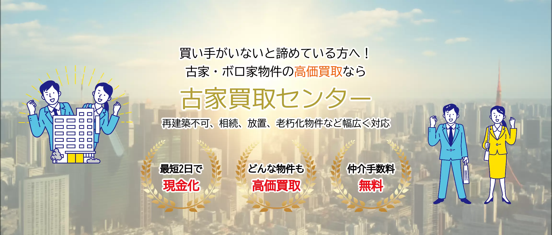 築年数が古く、傷んでいても問題ありません。古家・ボロ家を現状のままスピード査定し、最短2日で即現金化が可能です。